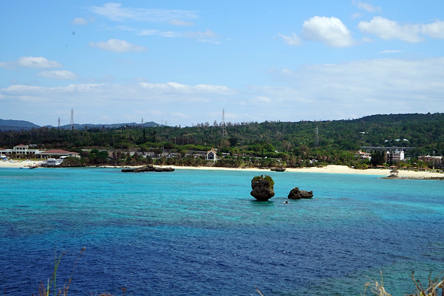 멀리 만자비치의 모습도 볼 수 있었는데요. 오~~ 바다색이 오묘하고 멋지더군요.