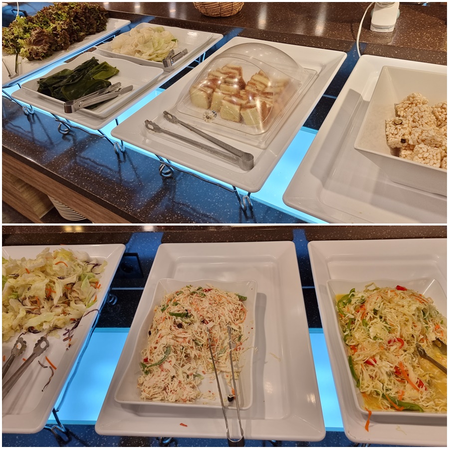 양배추로 만든 샐러드류도 맛이 괜찮았습니다. 아쉬운 건 다지마가 늘 염장이 덜되어 좀 짜다는 점. 딸기잼 바른 식빵과 강정도 늘 있는 것 같아요.