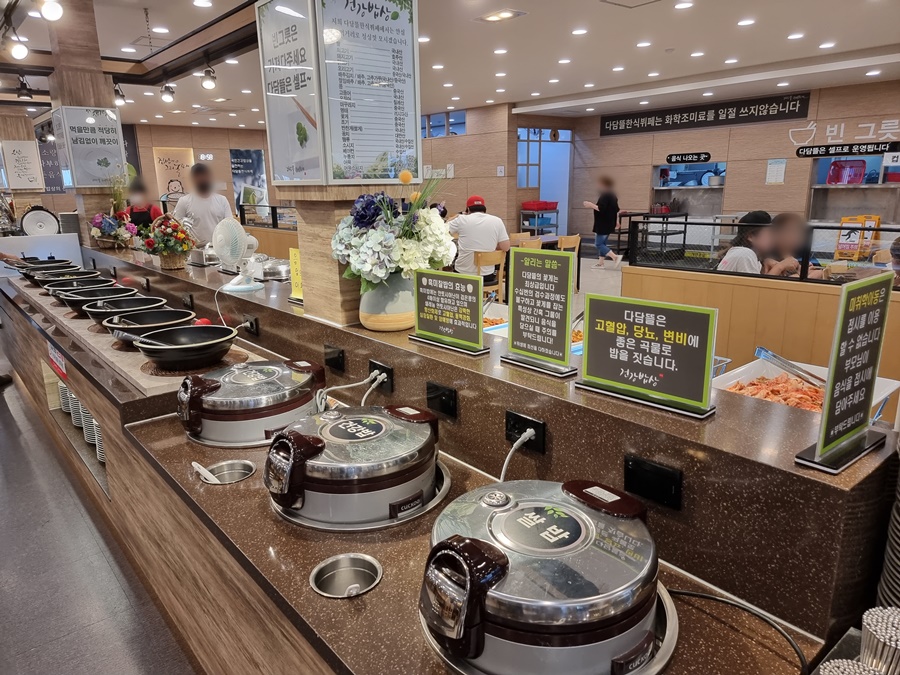다담뜰 매장은 일단 제가 이용했던 경험 안에서는 늘 음식 진열된 곳들이 깨끗하게 관리되고 있는 느낌을 받았습니다. 식사하면서 보면 중간중간 자주 정리하는 모습도 볼 수 있었고요.